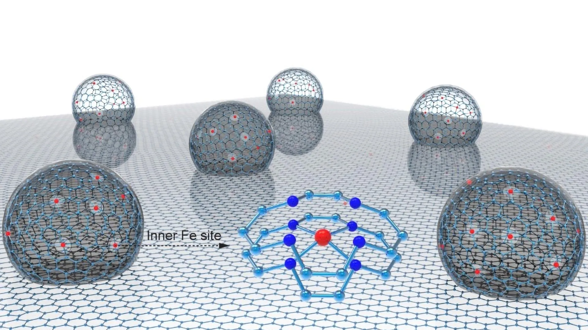 Para enfrentar esses desafios, a equipe de pesquisa liderada pelo Prof. Dan Wang (atualmente na Universidade de Shenzhen) e pelo Prof. ZHANG Suojiang do Instituto de Engenharia de Processos da Academia Chinesa de Ciências desenvolveu um catalisador de ferro em átomos únicos com superfície curva interna (CS Fe/N-C) com uma estrutura única de nanoconfinamento de múltiplas conchas (HoMS). Cada partícula nano oca, com cerca de 10 nm × 4 nm de tamanho, consiste em várias conchas onde os átomos de Fe estão concentrados nas camadas internas em alta densidade.
