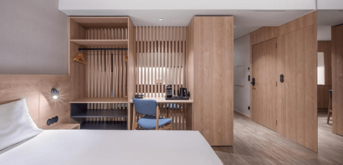 Entre os itens padrão estão a Smart TV, climatização, secretária, tomadas USB/USB-C e cofre. Algumas unidades oferecem mais flexibilidade, com camas separadas ou sofás-camas e também dispõem de máquina de café e chaleira.