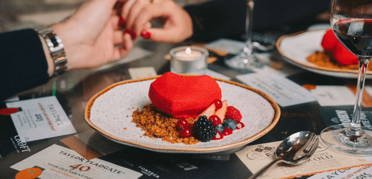 O percurso gastronómico inclui focaccia artesanal, creme de pastinaca, costela de vaca cozida a baixa temperatura, o exclusivo “1828 Cut” e uma sobremesa de chocolate com 70% de cacau, finalizada com vinho do Porto Taylor’s Late Bottled Vintage (LBV).