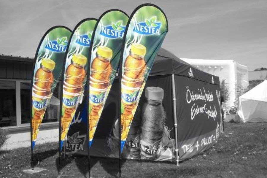 E ao contrário de outros materiais promocionais, os têxteis impressos por sublimação são reutilizáveis, resistentes às intempéries e mantêm as cores vivas durante anos – o que os torna um investimento inteligente a médio prazo.