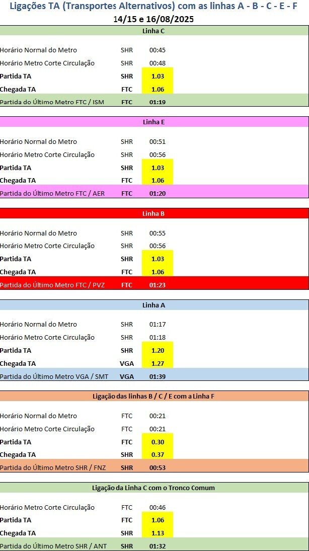 Linhas Azul, Vermelha, Verde, Violeta e Laranja contam com transporte alternativo em autocarro